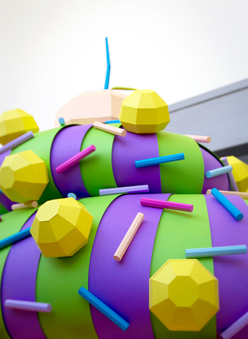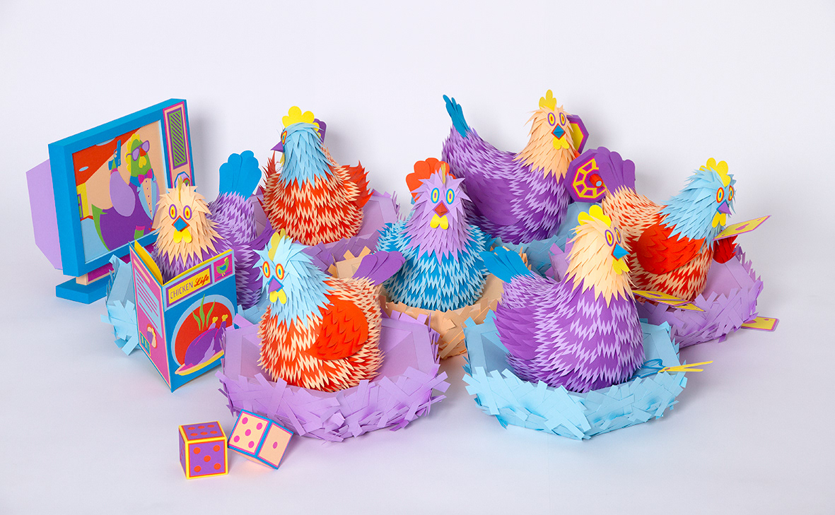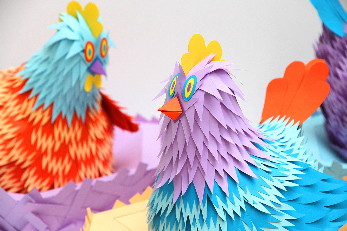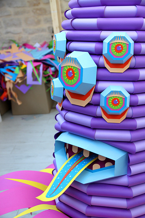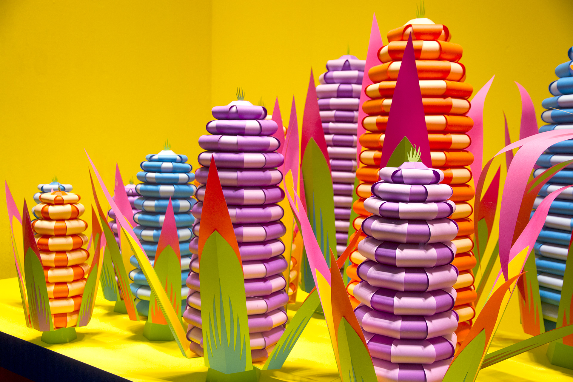 The authors are Zim&Zou, the creative French duo composed of Lucie Thomas and Thibault Zimmermann, who will illustrate in each window a precise modus operandi of the modern food industry creating a colourful paper universe, entirely made by hand.