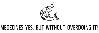 A fish that looks decisively odd, with around ten eyes and too many fins, is feeding on extra-large pills that slowly sink to the bottom of a pond. A visual metaphor to say that the excessive use of drugs, instead of being beneficial to the health, may develop resistance to antibiotics and cause malformations.
