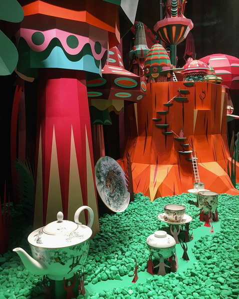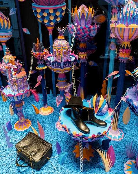 New artist window display project for the opening of a new Hermès store in Dubai (Mall of the Emirates). Nature is surrounding us and never cease to evolve since its beggining. Its run defines the world we’re living in. Nature is linked to every living beings, and every living being is linked to it. In this project, spectators have a sneak pick of the curious characters living inside this environment. This microscopic point of view, where plants and other vegetal reign as masters, is like a kind of picture, a flash, a precise instant in nature’s unrestrained run. Life is everywhere, flowers are growing and carry away its inhabitants in their impetus. This mysterious people is evolving, building, and living right in the heart of the nature, revealing a fragment of their daily life.