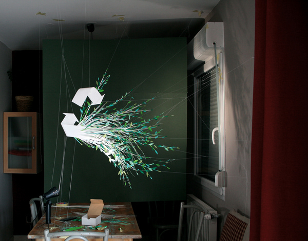 "Please Recycle" is a full handmade piece. It transforms the recycling logo's into vegetals.