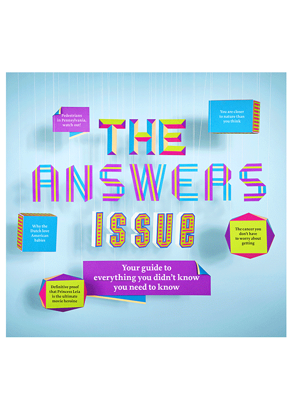 Main opener and section openers illustrations for TIME Magazine. "The Answers Issue" is a special all graphics issue. The articles are answering questions such as : How soon will we discover alien life? When will congress reach gender parity? Where should I seat to catch a foul ball?