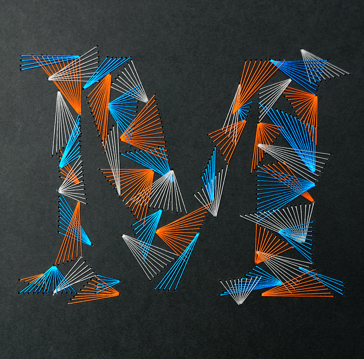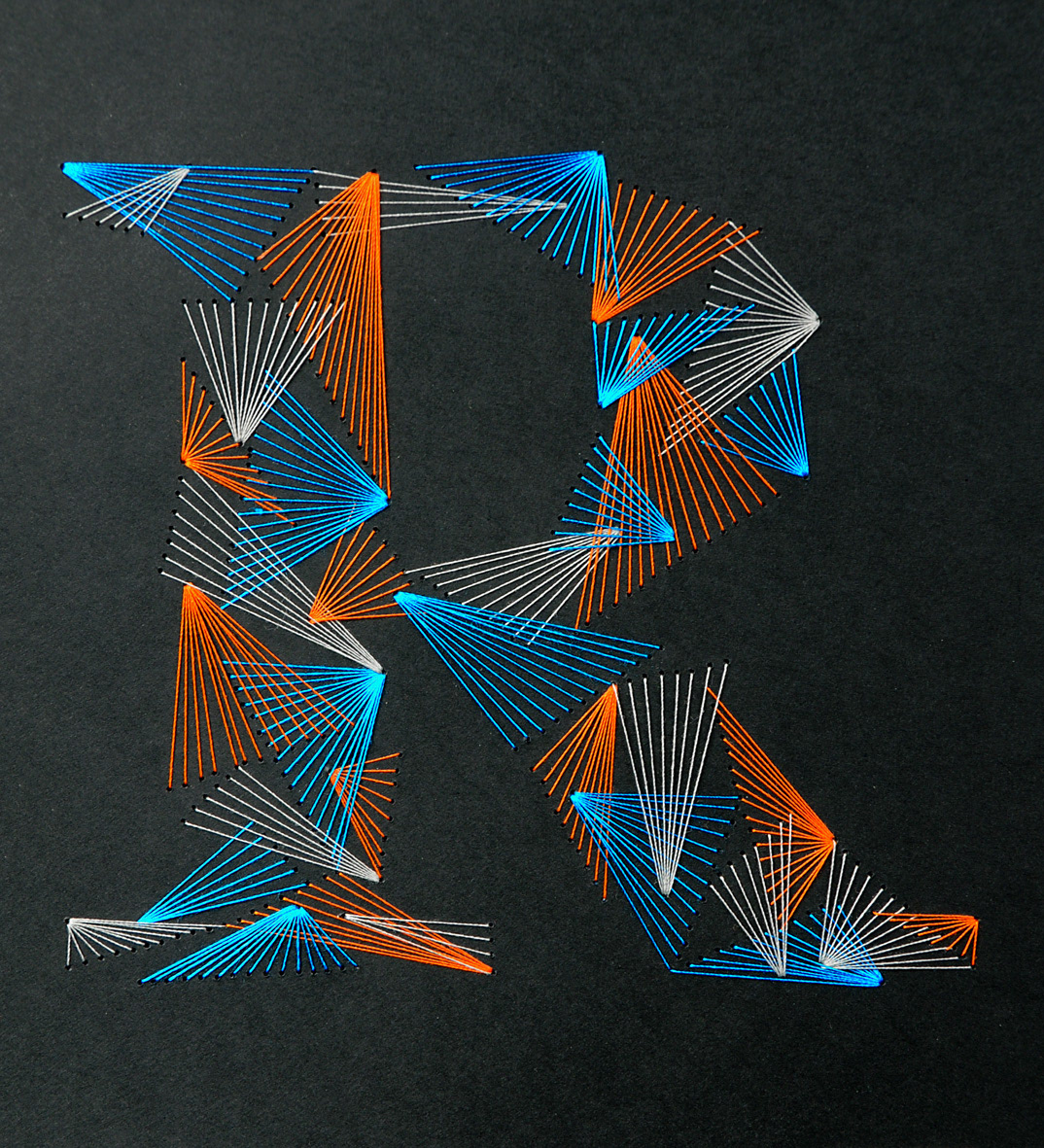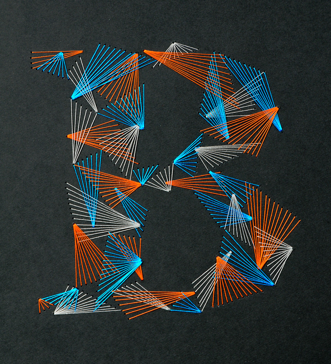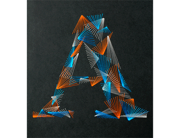 Weave Type 2 is a handmade font made with thread and paper. It took about 6 hours per letter and 500 meters of thread.