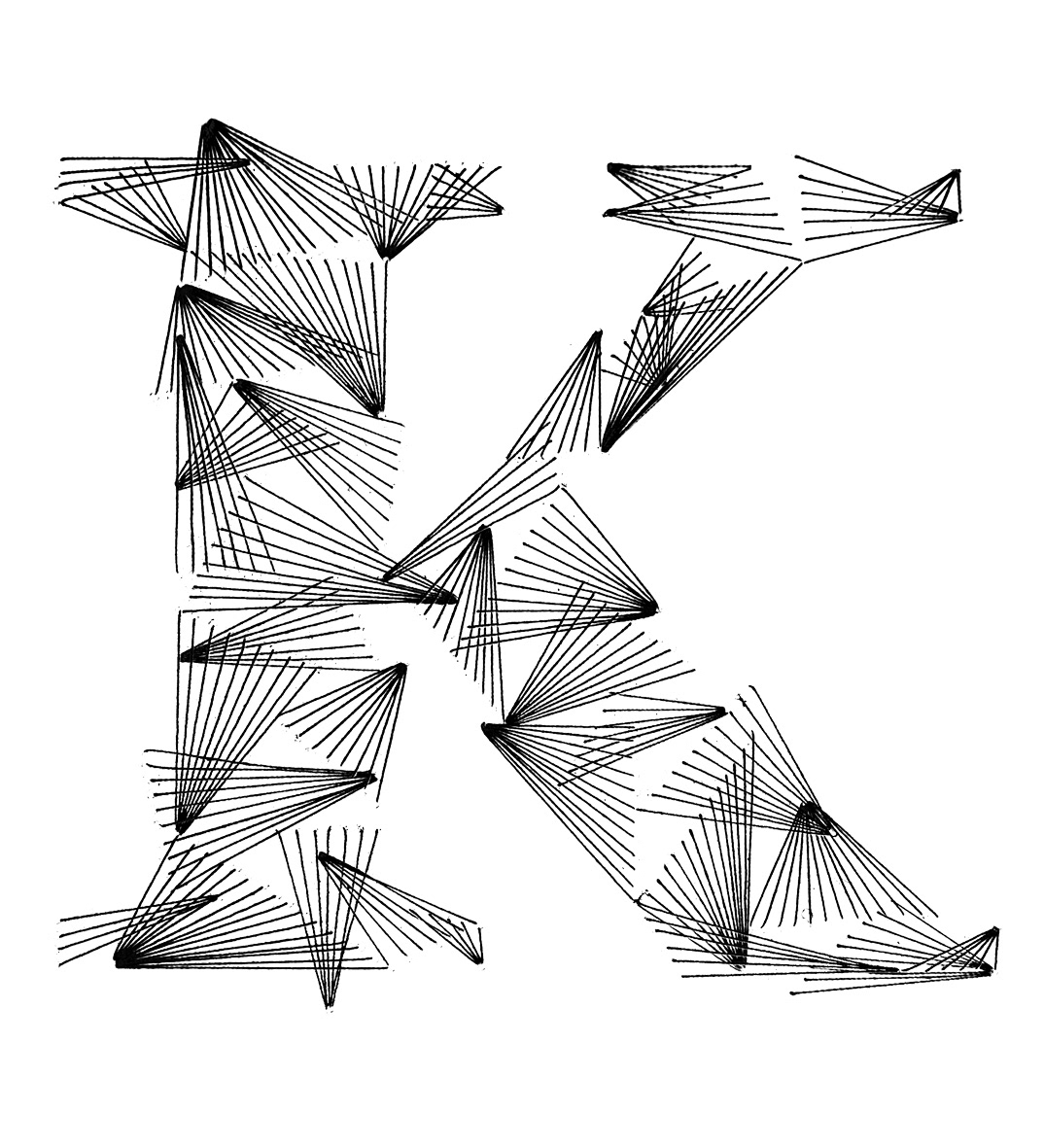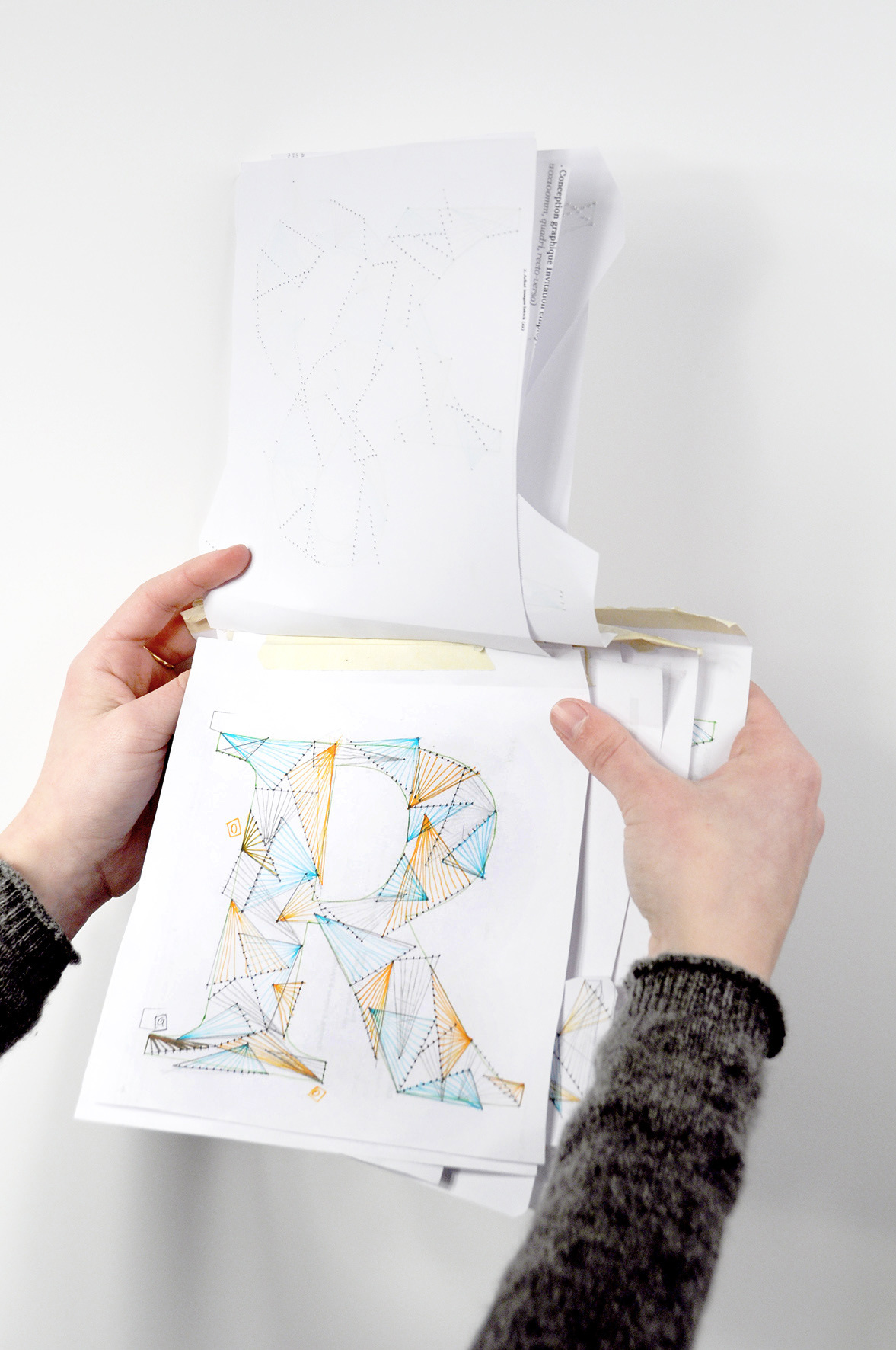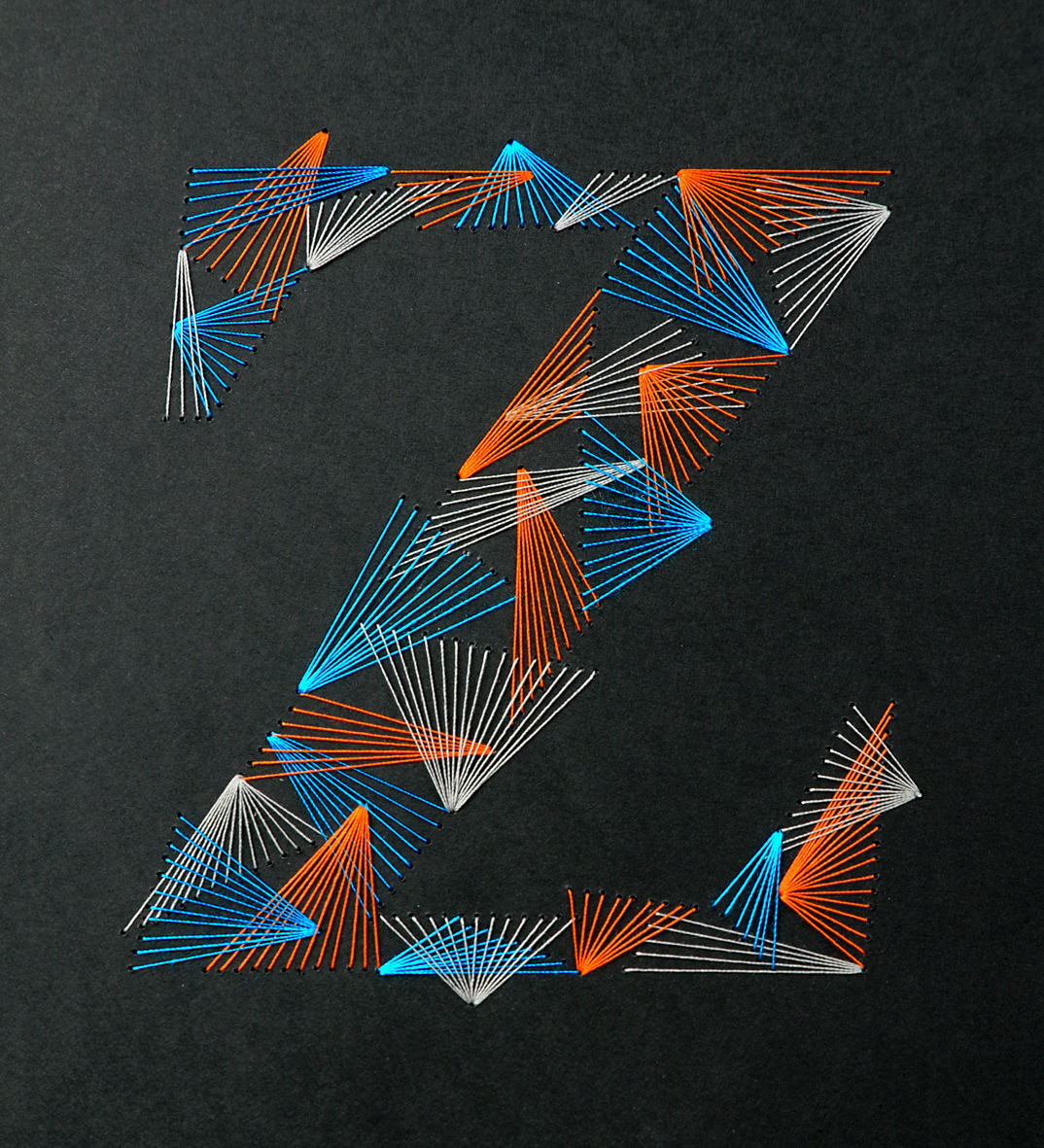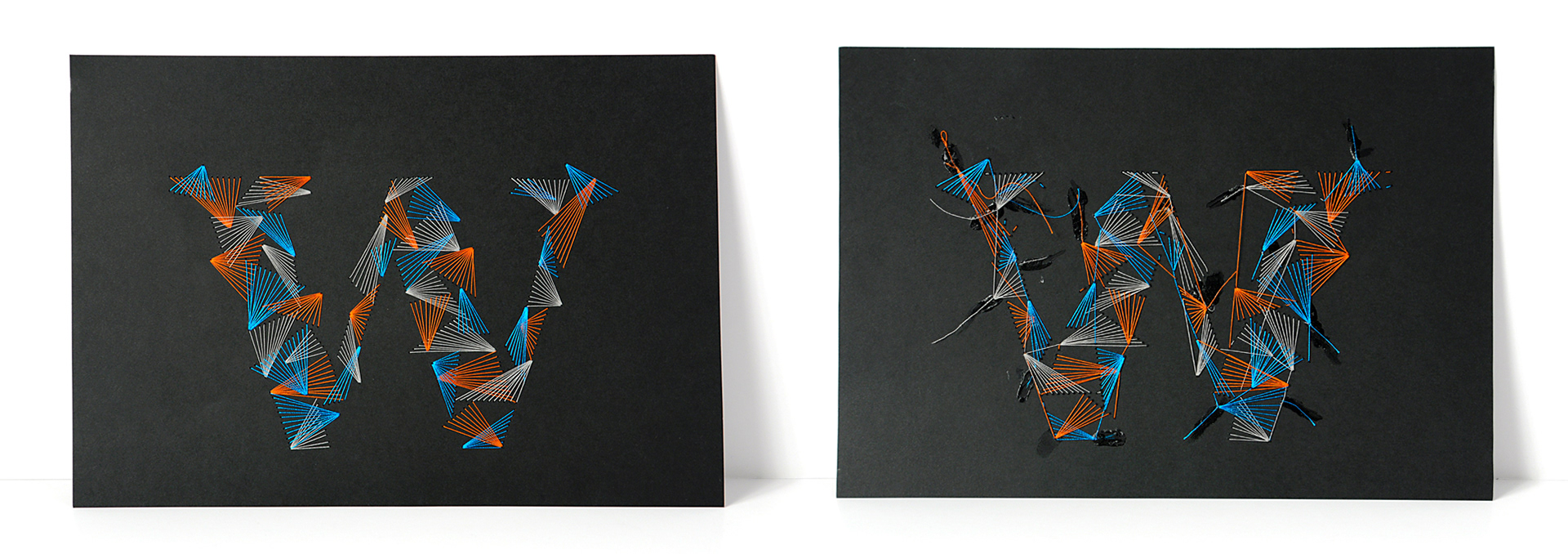 Weave Type 2 is a handmade font made with thread and paper. It took about 6 hours per letter and 500 meters of thread.
